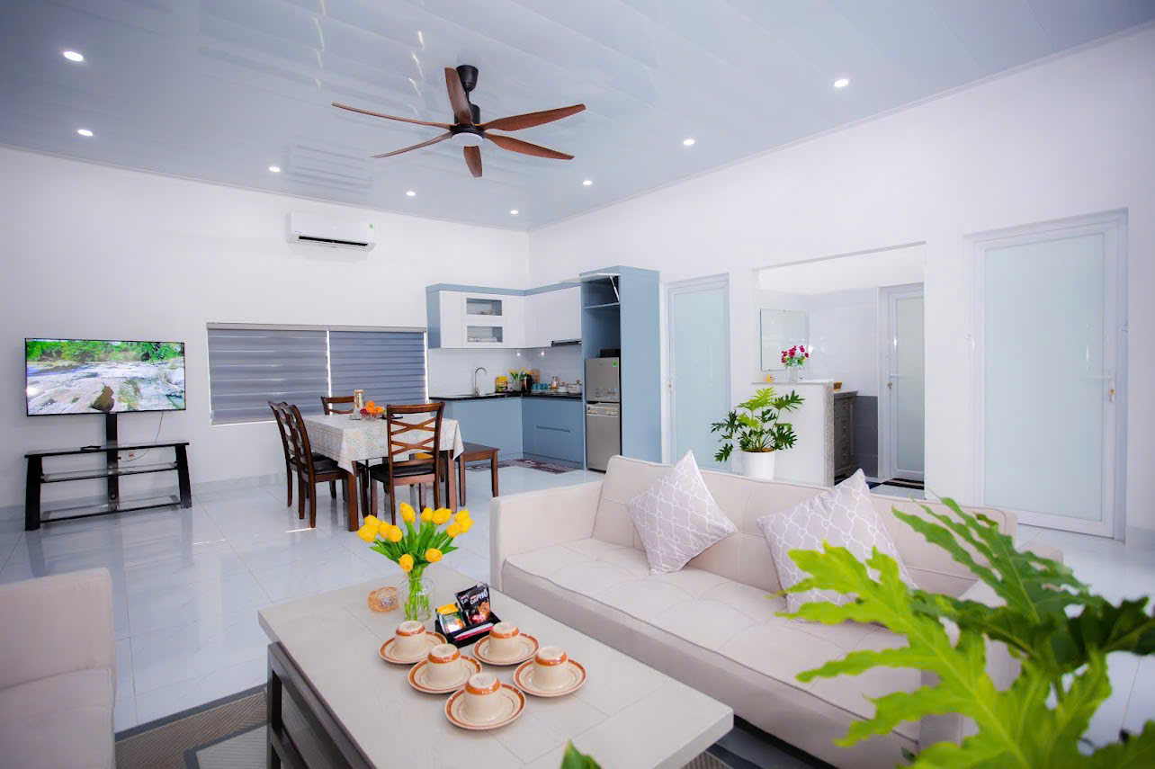 - 🌿 03 Villa 2 phòng ngủ – An Nhiên: 2 phòng ngủ (1 giường 1.8m, 1 giường King 2m x 2.3m), 2 WC, phòng khách, bếp tiện nghi đầy đủ dụng cụ.