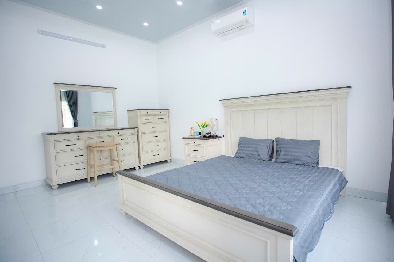 - 🌸 02 Villa 3 phòng ngủ – An Gia: 3 phòng ngủ riêng (2 phòng 1 giường 1.8m, 1 phòng 2 giường 1.8m), 3 WC, phòng khách, bếp đầy đủ dụng cụ.